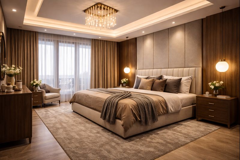 Our master bedroom designs focus on creating a perfect balance between aesthetics and comfort. From layout planning and lighting design to colour palettes, textures, and furniture selection, every detail is carefully curated to promote rest and well-being. We use soothing tones, ambient lighting, and premium materials to create a warm and inviting atmosphere.